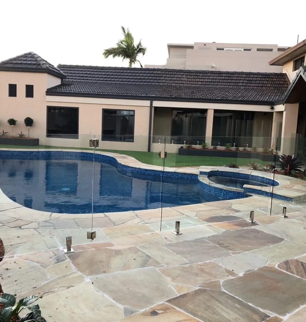 - Creates a frameless glass pool fence design